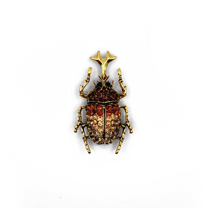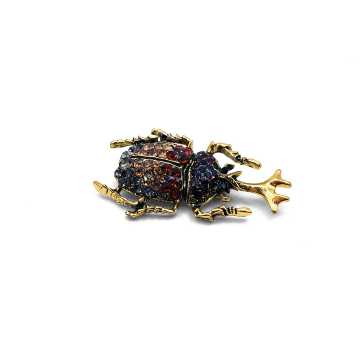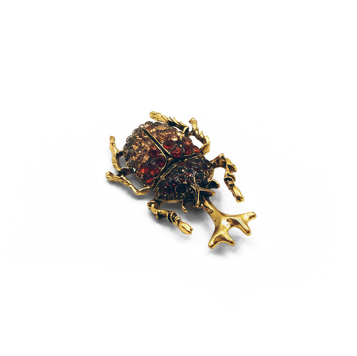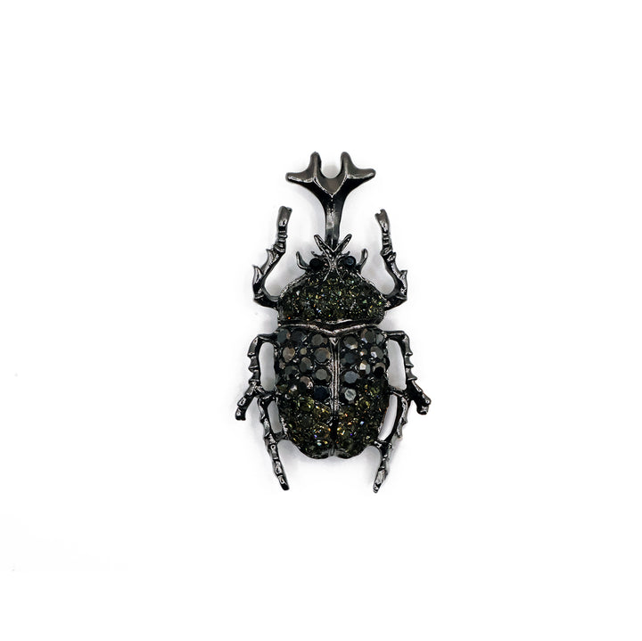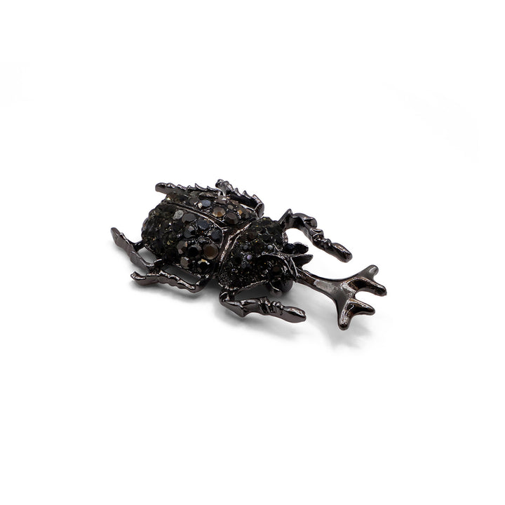 Los broches Argos muestran un escarabajo con piedras sobre un acabado negro o dorado metálico, logrando un efecto sofisticado y moderno. Brillante y misterioso, es un accesorio audaz y lleno de carácter.