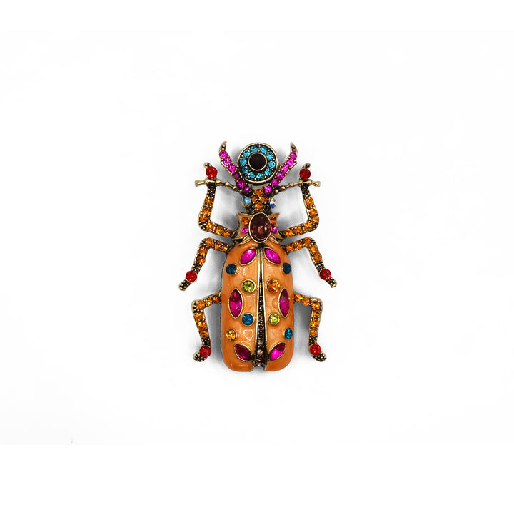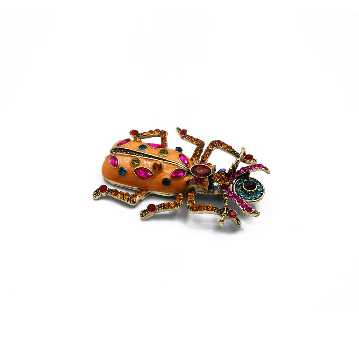 Los broches Kyoto presentan un escarabajo esmaltado decorado con piedras de colores. Sus formas geométricas y detalles dorados le dan un aire moderno, vibrante y sofisticado. Ideal para quienes buscan un accesorio único y lleno de color.