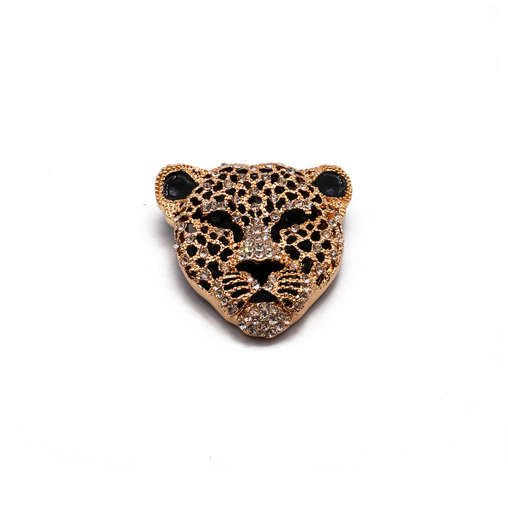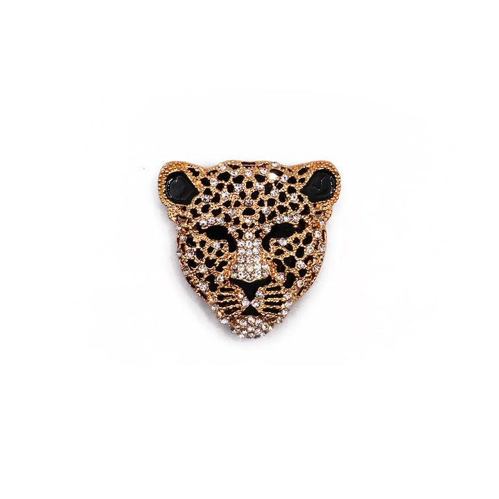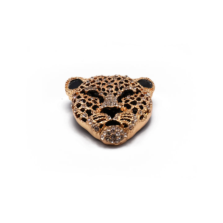 El broche Pardus muestra la cabeza de un leopardo con piedras brillantes y un acabado dorado elegante. Una pieza audaz y lujosa, ideal para quienes buscan un accesorio con fuerza, glamour y estilo animal.