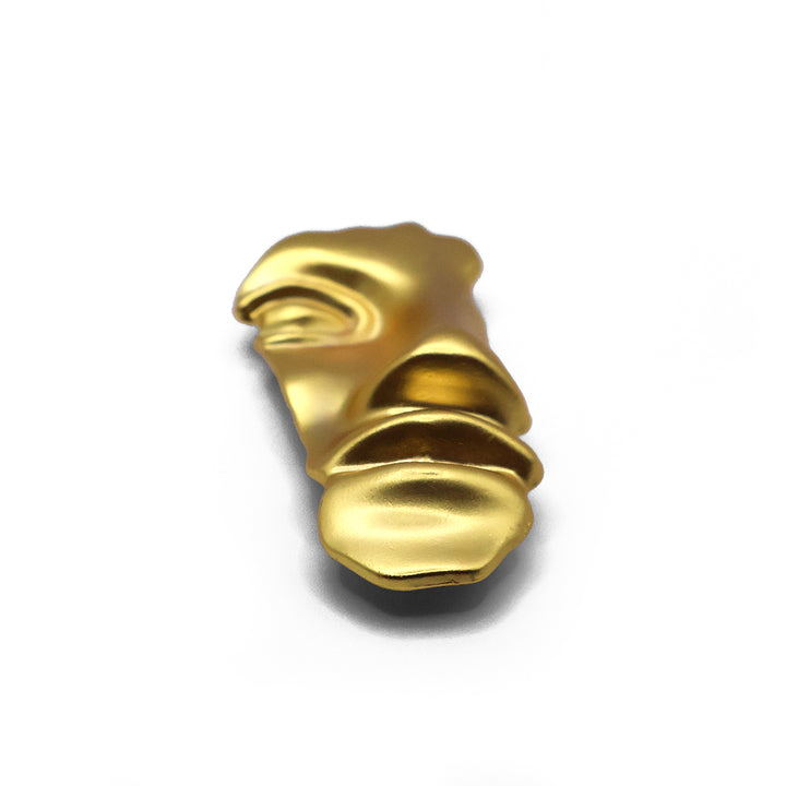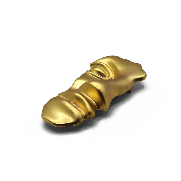 El broche Vecchio fusiona arte y moda con un rostro abstracto en dorado brillante. Su diseño fluido y minimalista lo hace una pieza única que fusiona arte y moda, perfecta para quienes buscan un accesorio audaz y creativo.